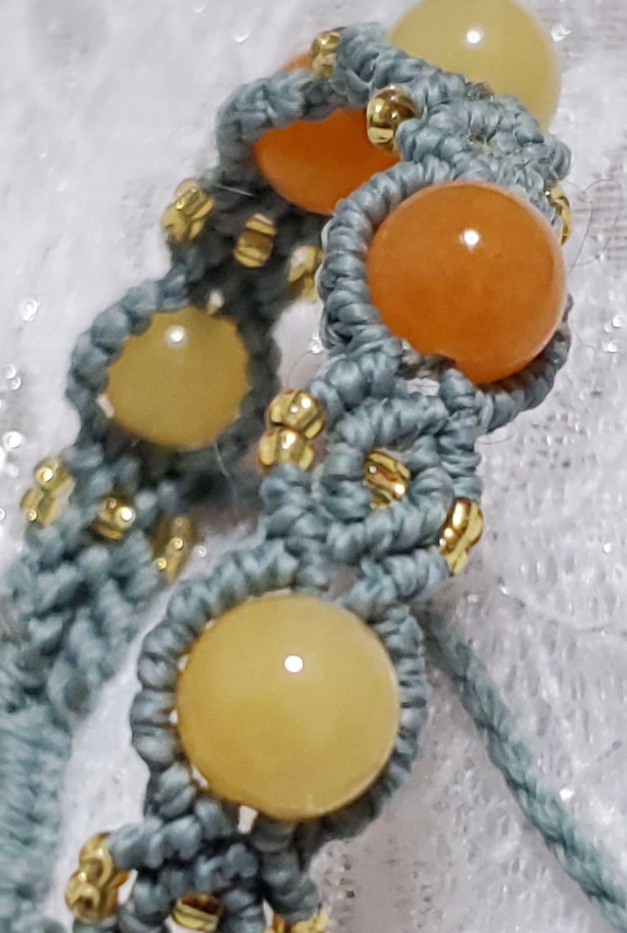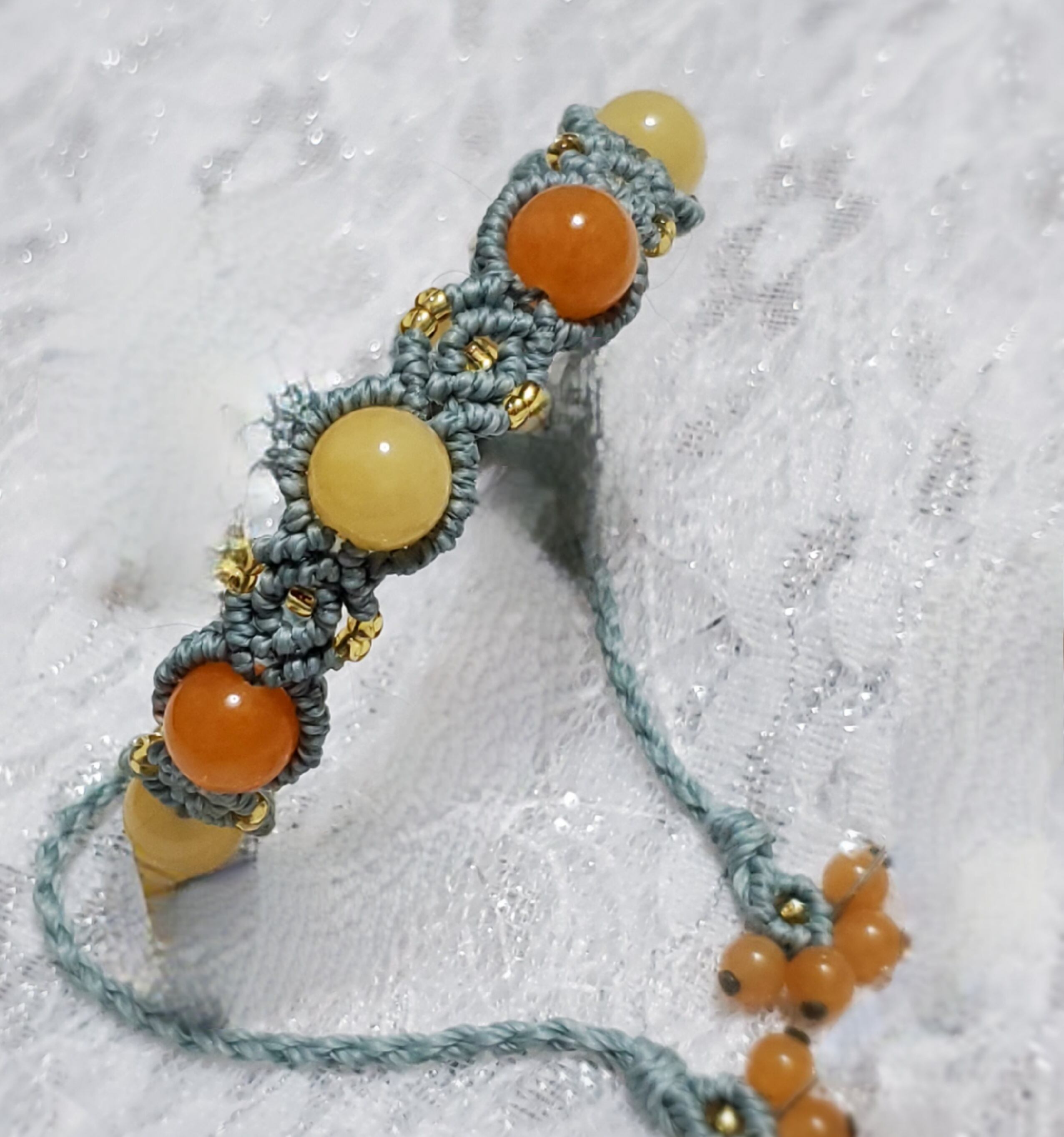 オレンジカルセドニーとイエロージェイドを使用。