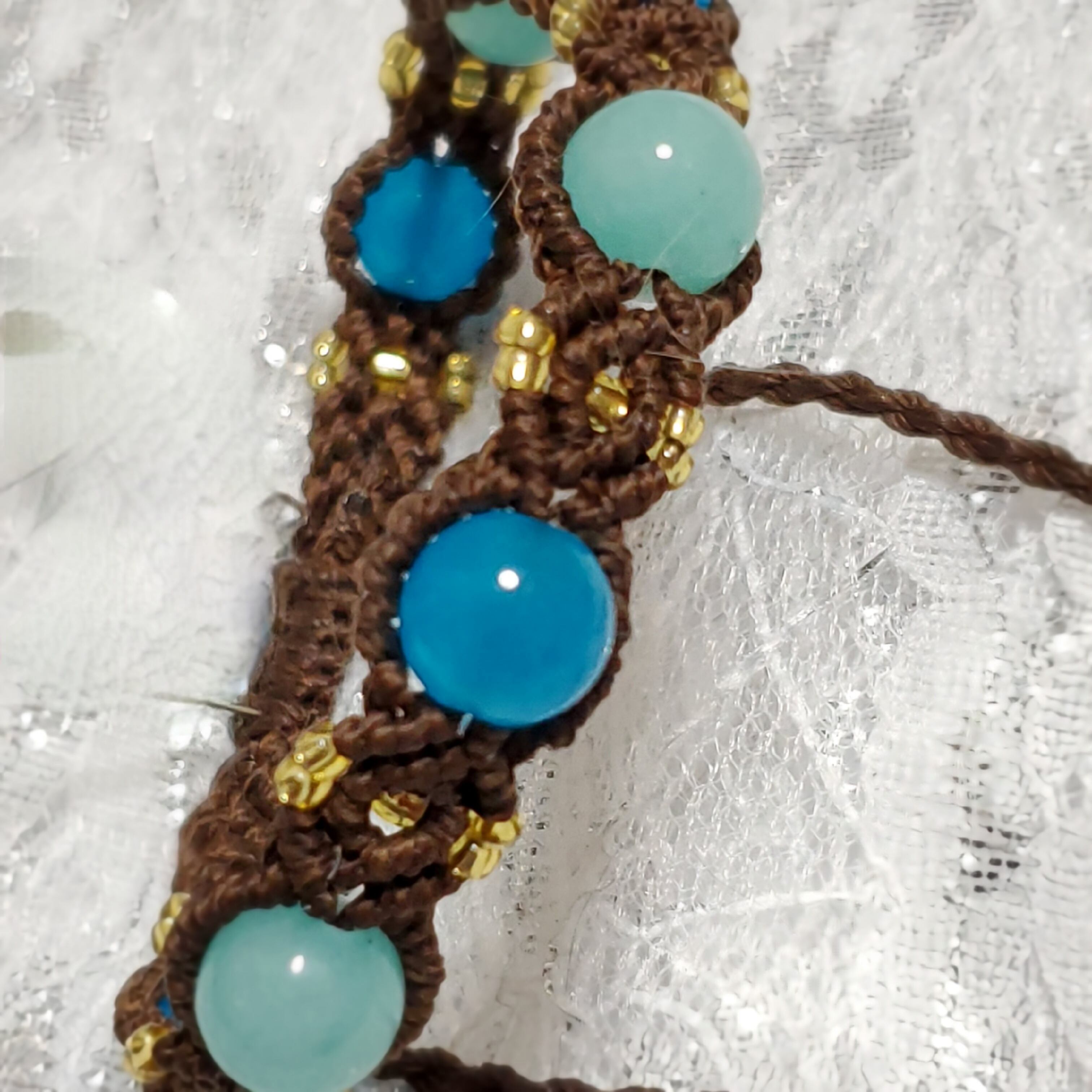 鮮やかなブルーカルセドニーとアマゾナイトの組み合わせ。
